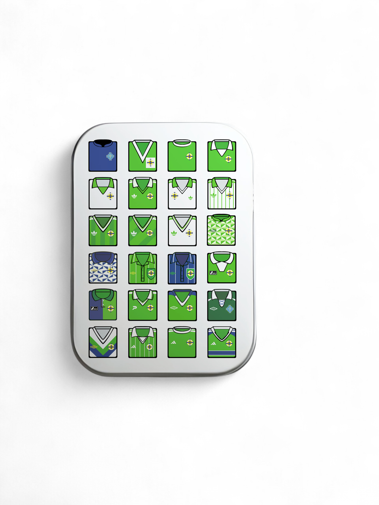 - Design: This tin features classic Northern Ireland Kit designs, showcasing various team jerseys. 🏆